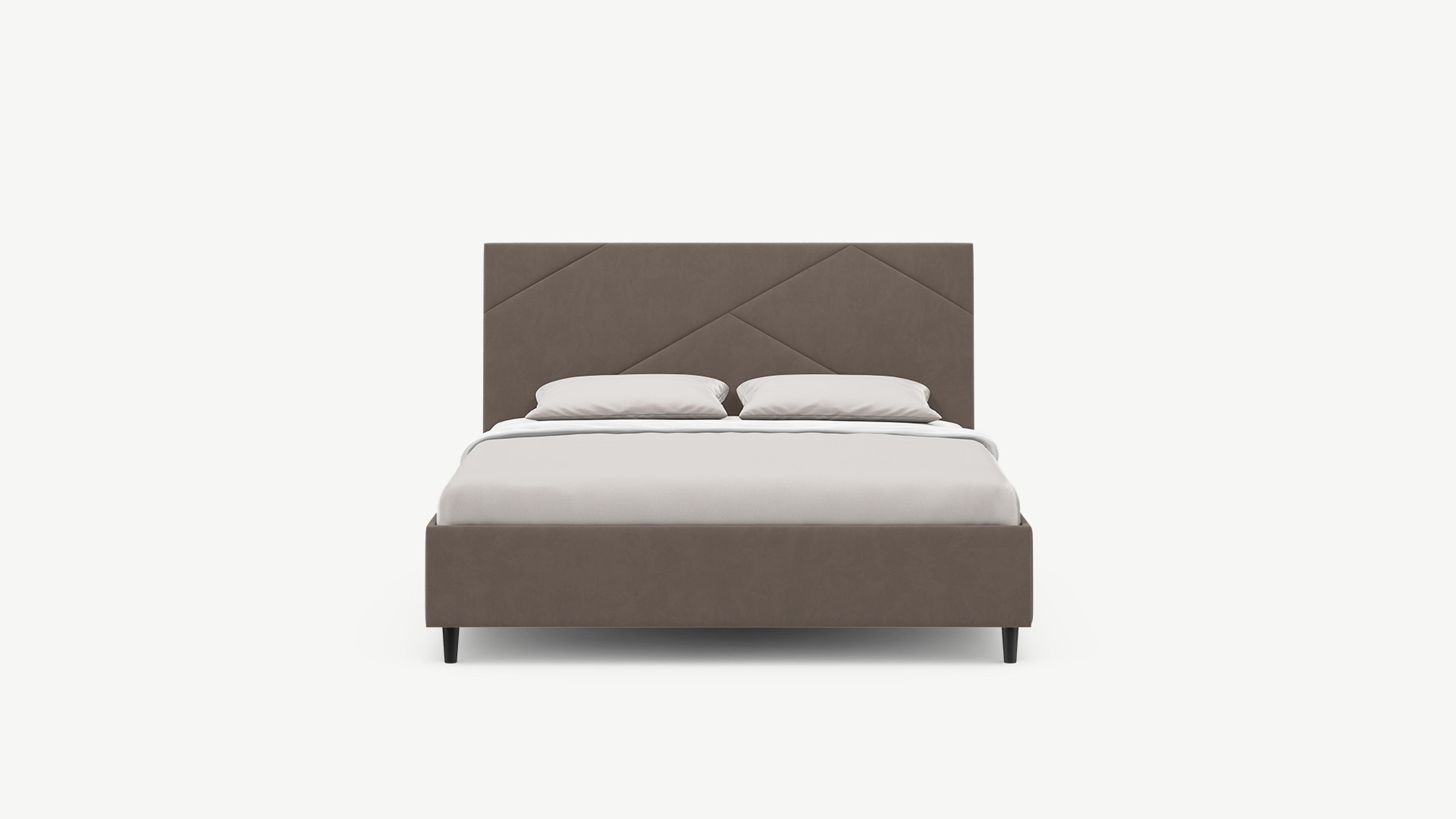Элегантным и практичным акцентом служат скрытые карманы, расположенные по его углам. Лаконичные формы объемных царг создают единый гармоничный образ и фокусируют внимание на центральном текстурном элементе кровати.