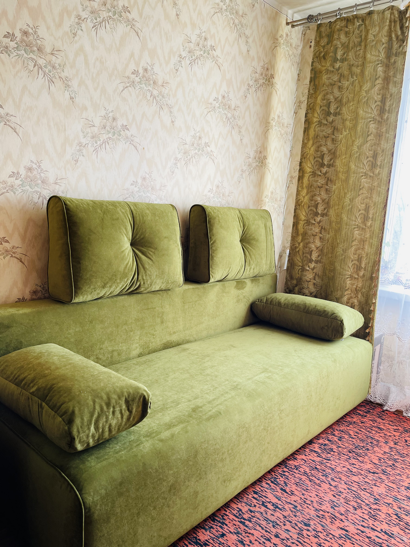 Привезли вовремя, собрали быстро, диван велюр с пальчиковым эффектом в зелёном цвете, очень жёсткий