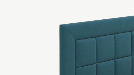 Изголовье декорировано рельефным рисунком стежки в крупный квадрат, получившим особую фактуру за счет глубины шва.