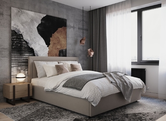 Фактура обивочного материала подбирается дизайнерами с учетом технологических и стилевых особенностей кровати.