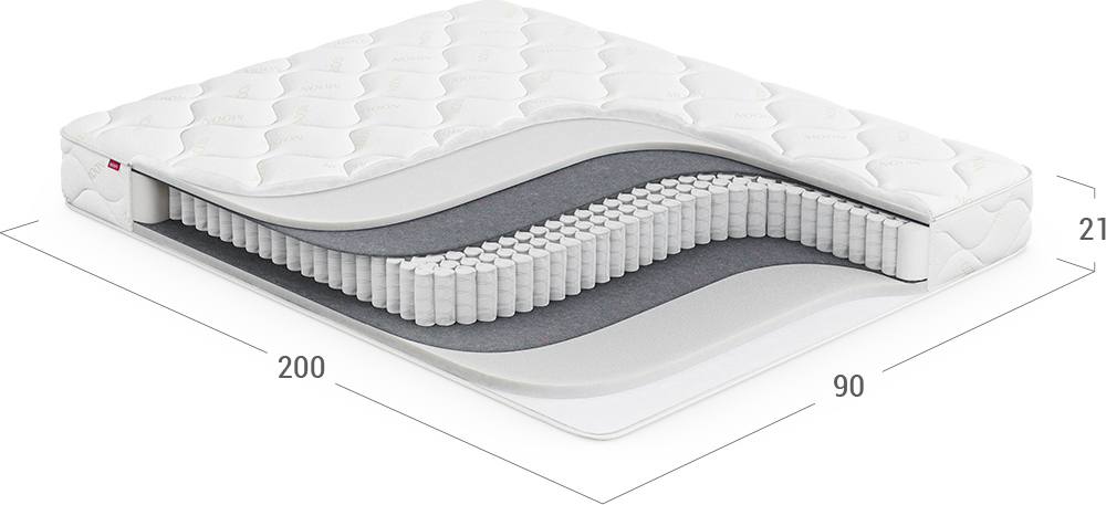 MOON FAMILY  MONO Base – однозональный матрас базовой комплектации с независимой пружинной основой: