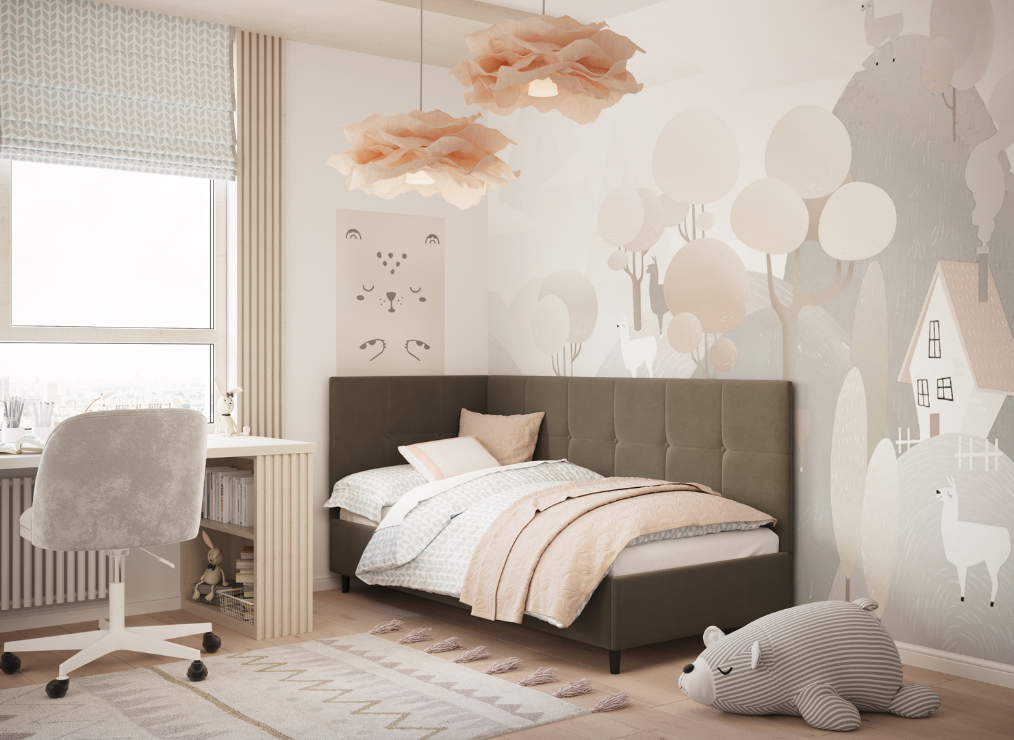 MOON FAMILY 1261 объединяет функциональность и стиль, создавая гармоничное пространство для отдыха и творчества. Кровать доступна в левостороннем и правостороннем исполнении, что позволяет легко адаптировать ее под любые интерьерные особенности.