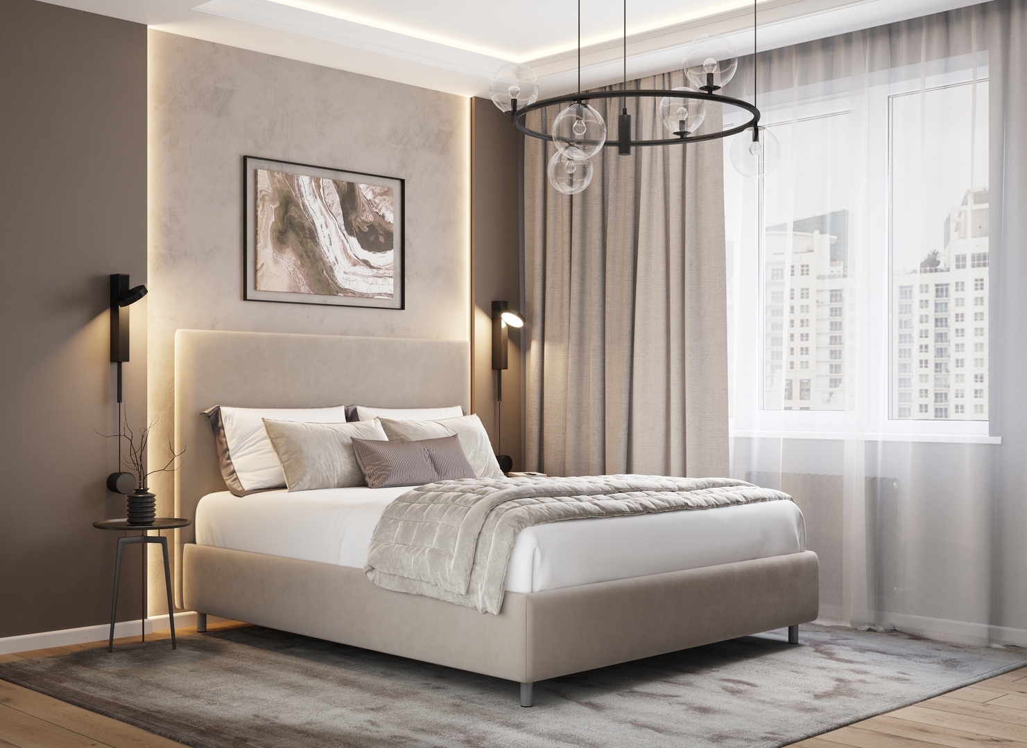 Разнообразие цветовой палитры позволит подобрать желаемый оттенок обивочной ткани. Использование светлых цветов поддержит настроение стиля «Сканди». Приглушенные насыщенные оттенки оформят кровать в стиле «Лофт». Нейтральные оттенки в цвет интерьера обыграют спальню в Современном стиле.